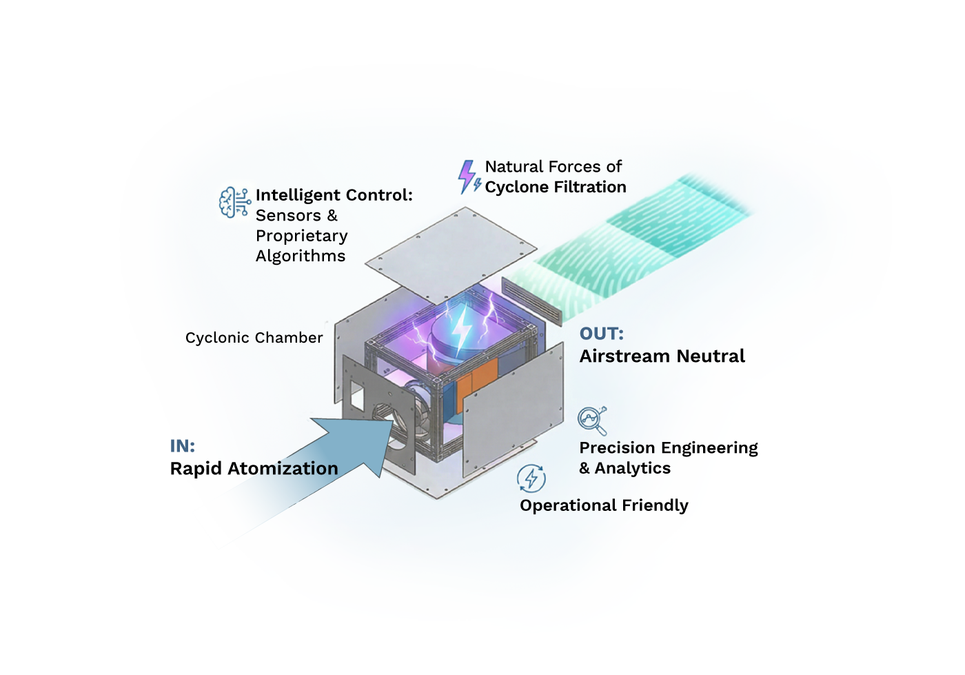HumBay is a patented atmospheric control technology designed to regulate humidity as a primary system input - reflecting its impact on pathogen viability, corrosion, materials fatigue, and human performance.